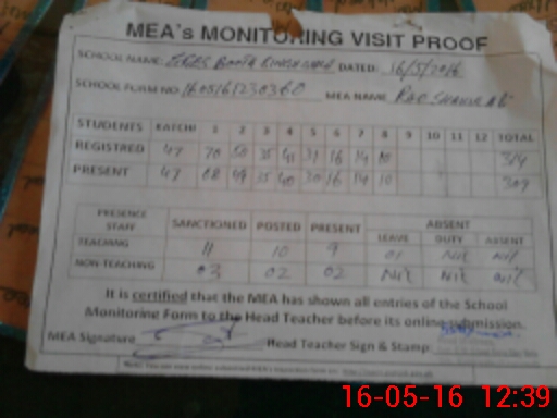 | Attendance Register | Head Teacher | MEA with School | Visit Proof |
