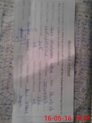 | Monitoring Date: 16-05-2016 | Start Time: 16-05-2016 08:57 AM | End Time: 16-05-2016 10:10 AM | Name of MEA: Gu**** Hu**** Kh**** | |