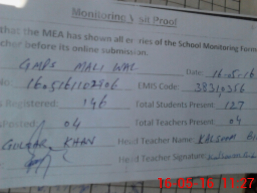 | EMIS Code: 38310356 | Name of School: GMPS MALI WALL | |||