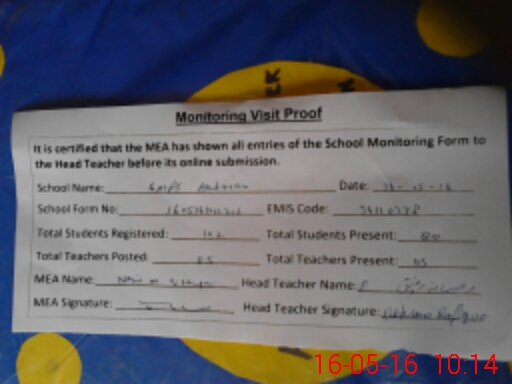 | Attendance Register | Head Teacher | MEA with School | Visit Proof |