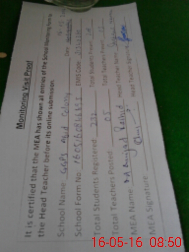 | Certified that this School was Inspected by the Undersigned MEA/DMO Today and the Information Stated Above is as Per Record. | |||||