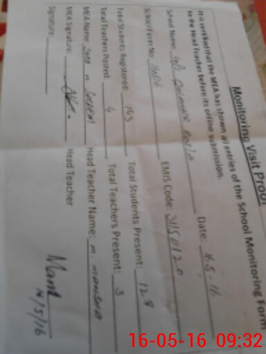 | Attendance Register | Head Teacher | MEA with School | Visit Proof |