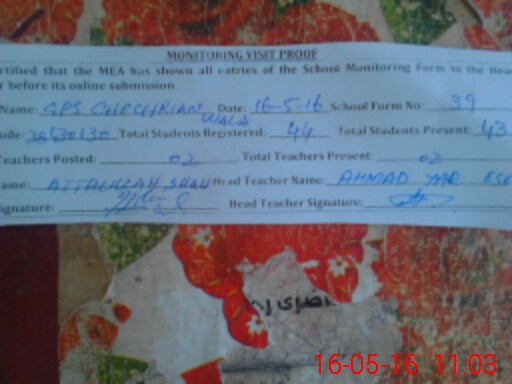 | EMIS Code: 38430130 | Name of School: GPS CHOCHRIAN WALA | |||