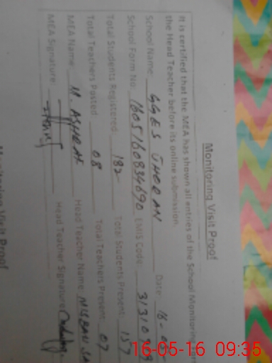 | Attendance Register | Head Teacher | MEA with School | Visit Proof |