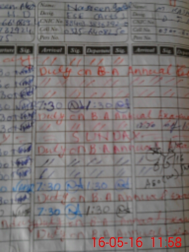 | CNIC | Full Name | Designation | R/C | Absence During Last Calender Month |