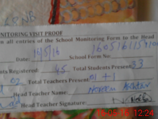 | Attendance Register | Head Teacher | MEA with School | Visit Proof |