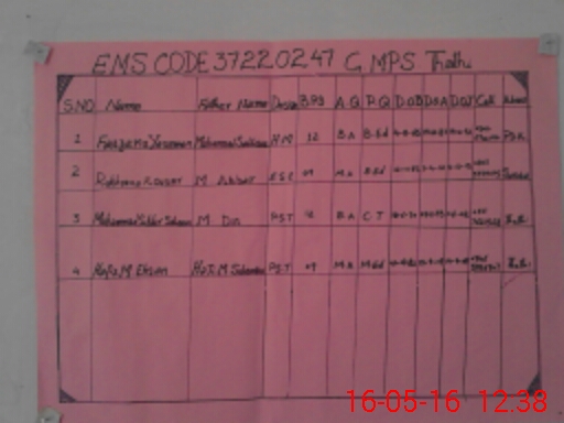 | Name: Sa**** Mu**** Designation: (School Headmaster's/Headmistress's) PTC/JV Phone/Cell Number: 03**** |