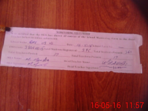 | Attendance Register | Head Teacher | MEA with School | Visit Proof |