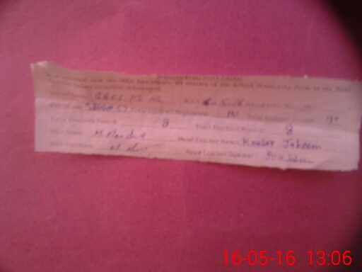 | Name: Zu**** Be**** Designation: (School Headmaster's/Headmistress's) EST ARTS Phone/Cell Number: 03**** |