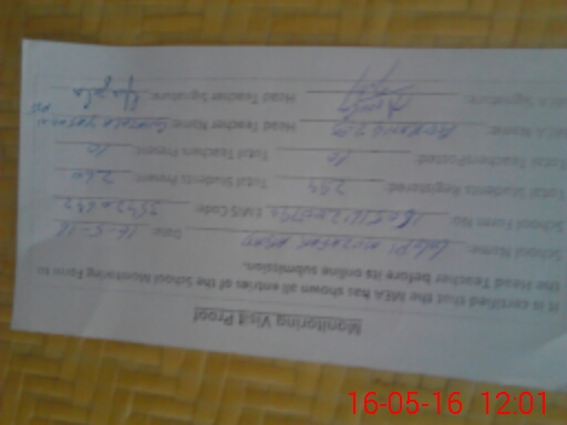 | Name: GH**** YA**** Designation: (School Headmaster's/Headmistress's) PTC/JV Phone/Cell Number: 03**** |
