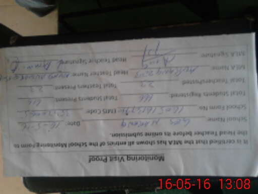 | Attendance Register | Head Teacher | MEA with School | Visit Proof |