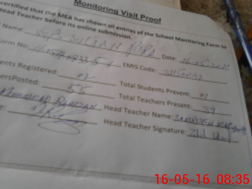 | EMIS Code: 31150042 | Name of School: GGPS SULTAN PURA | |||