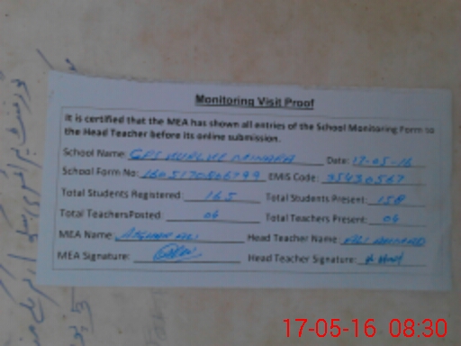 | Certified that this School was Inspected by the Undersigned MEA/DMO Today and the Information Stated Above is as Per Record. | |||||