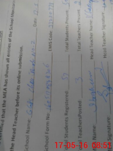 | Name: AN**** YO**** Designation: (School Headmaster's/Headmistress's) P S T Phone/Cell Number: 03**** |