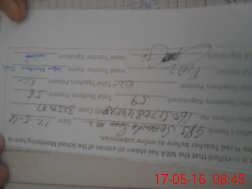 | Name: MU**** PE**** Designation: (School Headmaster's/Headmistress's) PST Phone/Cell Number: 03**** |