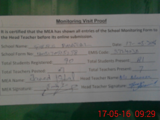 | Certified that this School was Inspected by the Undersigned MEA/DMO Today and the Information Stated Above is as Per Record. | |||||