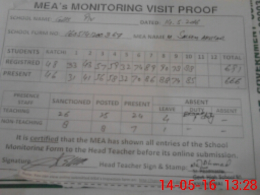 | Attendance Register | Head Teacher | MEA with School | Visit Proof |