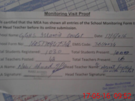 | Attendance Register | Head Teacher | MEA with School | Visit Proof |