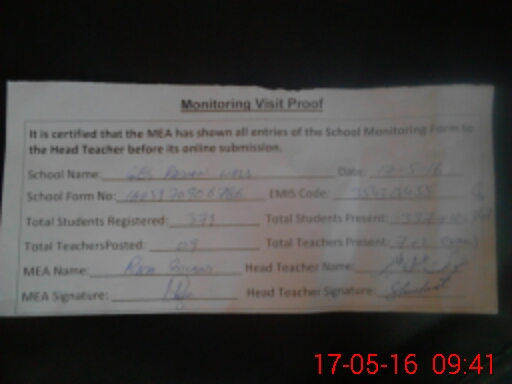 | Certified that this School was Inspected by the Undersigned MEA/DMO Today and the Information Stated Above is as Per Record. | |||||
