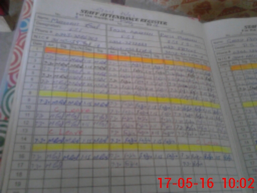 | CNIC | Full Name | Designation | R/C | Absence During Last Calender Month |