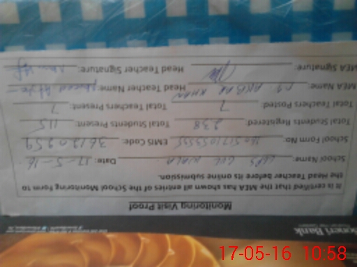 | Attendance Register | Head Teacher | MEA with School | Visit Proof |