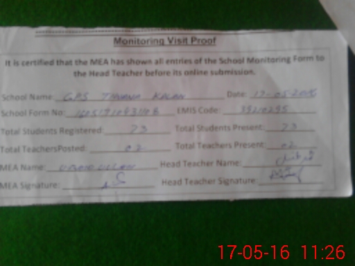 | Certified that this School was Inspected by the Undersigned MEA/DMO Today and the Information Stated Above is as Per Record. | |||||