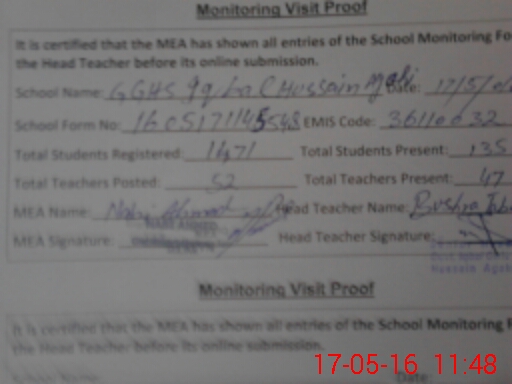| Attendance Register | Head Teacher | MEA with School | Visit Proof |