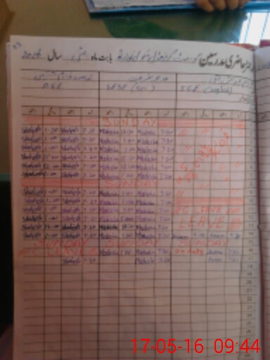 | CNIC | Full Name | Designation | R/C | Absence During Last Calender Month |