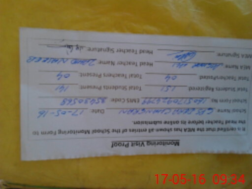 | Monitoring Date: 17-05-2016 | Start Time: 17-05-2016 09:17 AM | End Time: 17-05-2016 09:34 AM | Name of MEA: Mu**** As**** An**** (R**** | |