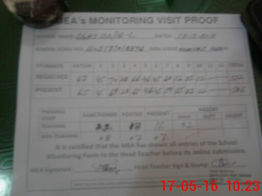 | Attendance Register | Head Teacher | MEA with School | Visit Proof |