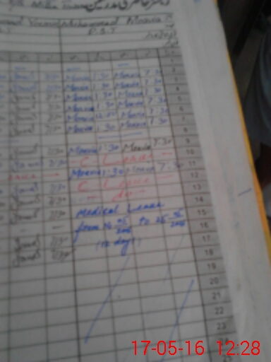 | CNIC | Full Name | Designation | R/C | Absence During Last Calender Month |
