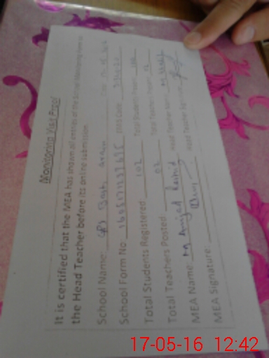 | Certified that this School was Inspected by the Undersigned MEA/DMO Today and the Information Stated Above is as Per Record. | |||||