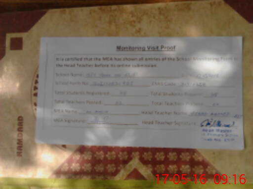 | Attendance Register | Head Teacher | MEA with School | Visit Proof |