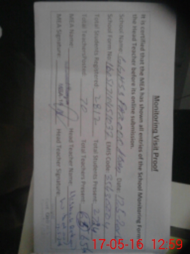 | Certified that this School was Inspected by the Undersigned MEA/DMO Today and the Information Stated Above is as Per Record. | |||||