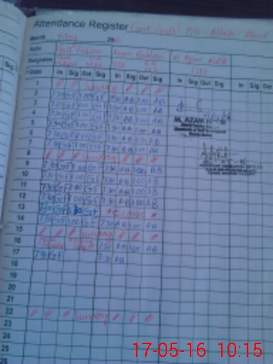 | CNIC | Full Name | Designation | R/C | Absence During Last Calender Month |