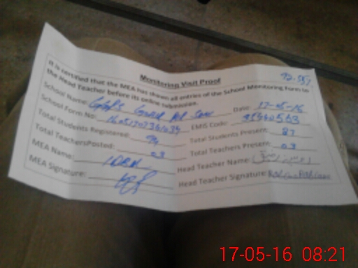 | Attendance Register | Head Teacher | MEA with School | Visit Proof |