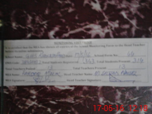 | EMIS Code: 38430032 | Name of School: GHS KHAWAJA ABAD | |||