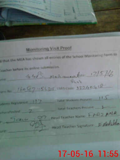 | Attendance Register | Head Teacher | MEA with School | Visit Proof |