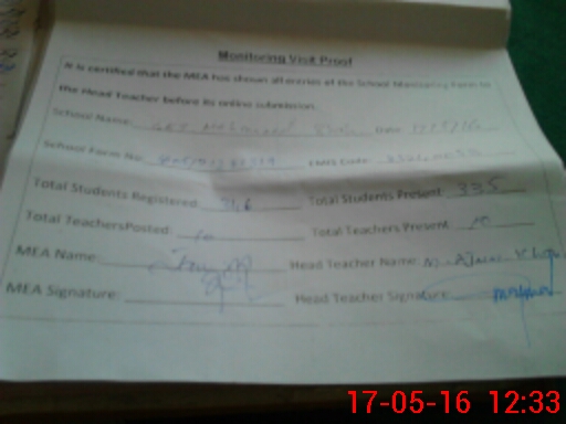 | Attendance Register | Head Teacher | MEA with School | Visit Proof |