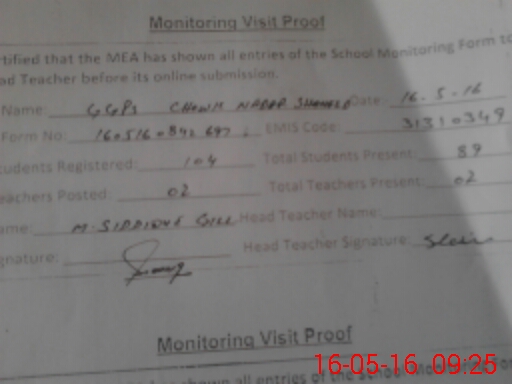 | EMIS Code: 31310349 | Name of School: GGPS CHOWK NADIR SHAHEED (After Noon) | |||