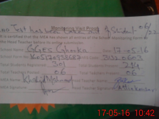 | Certified that this School was Inspected by the Undersigned MEA/DMO Today and the Information Stated Above is as Per Record. | |||||