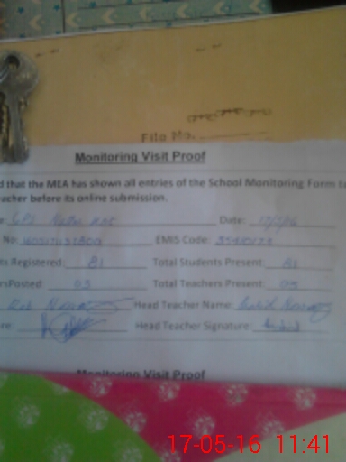 | Attendance Register | Head Teacher | MEA with School | Visit Proof |