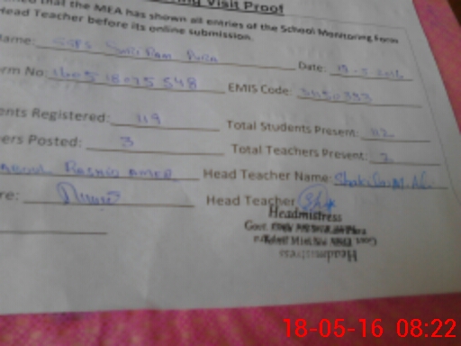 | Certified that this School was Inspected by the Undersigned MEA/DMO Today and the Information Stated Above is as Per Record. | |||||