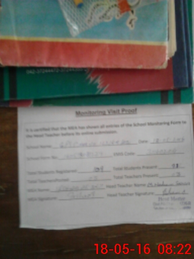 | Certified that this School was Inspected by the Undersigned MEA/DMO Today and the Information Stated Above is as Per Record. | |||||