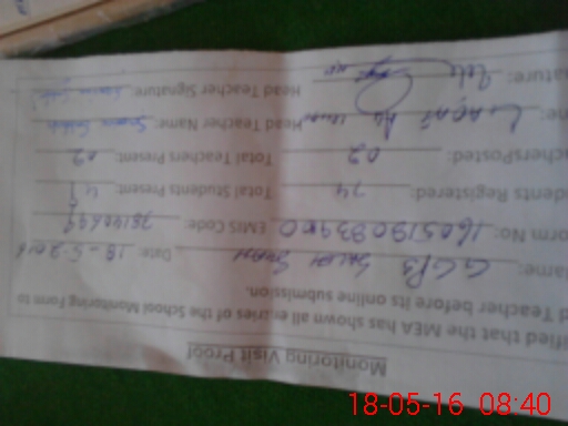 | Attendance Register | Head Teacher | MEA with School | Visit Proof |