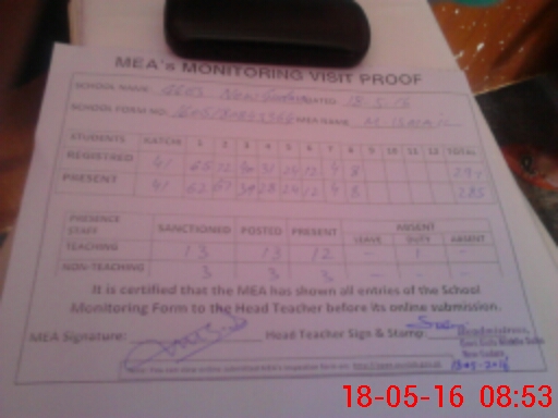 | Attendance Register | Head Teacher | MEA with School | Visit Proof |