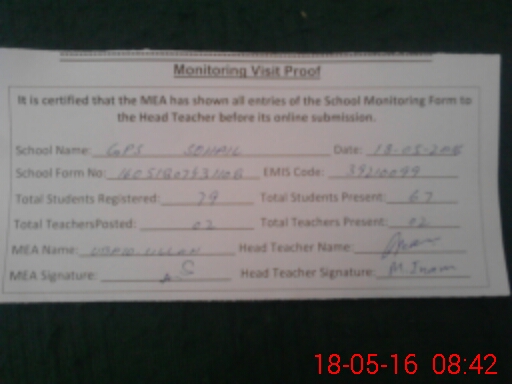 | EMIS Code: 39210099 | Name of School: GPS SOHAIL P/O 27/SP | |||