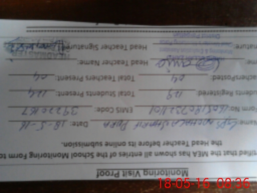 | Attendance Register | Head Teacher | MEA with School | Visit Proof |