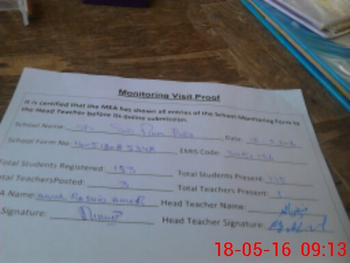 | Attendance Register | Head Teacher | MEA with School | Visit Proof |