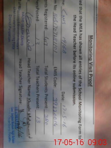 | Certified that this School was Inspected by the Undersigned MEA/DMO Today and the Information Stated Above is as Per Record. | |||||